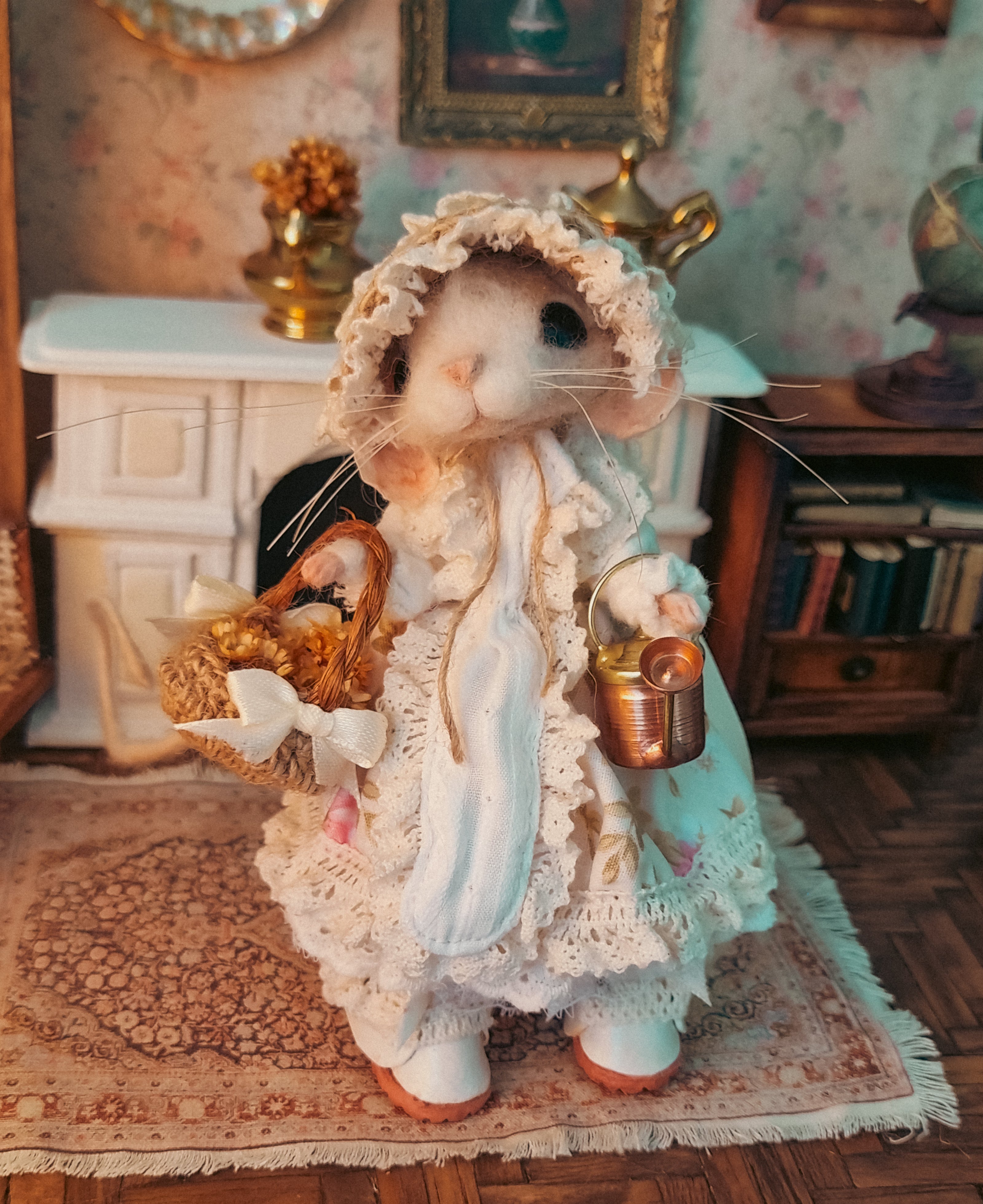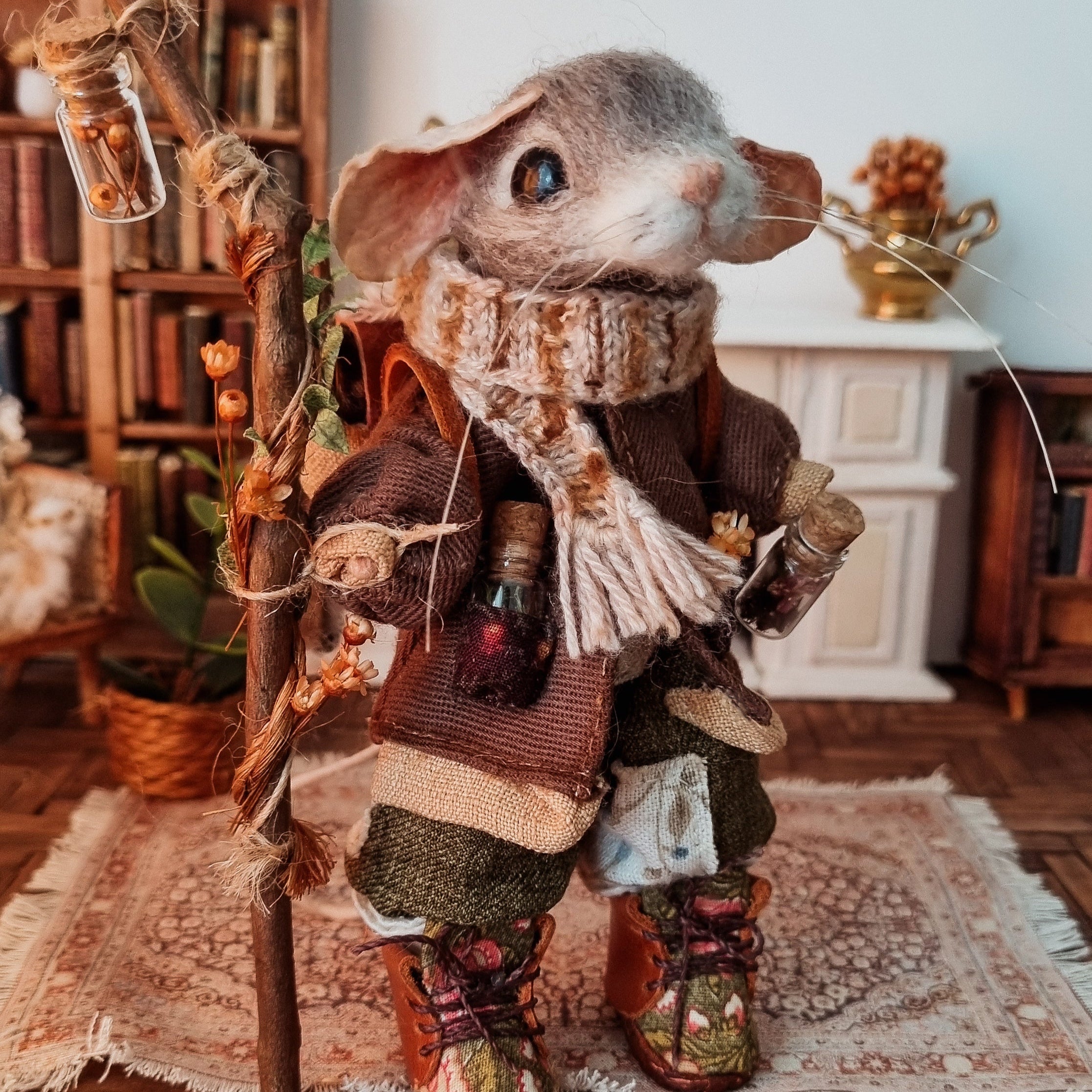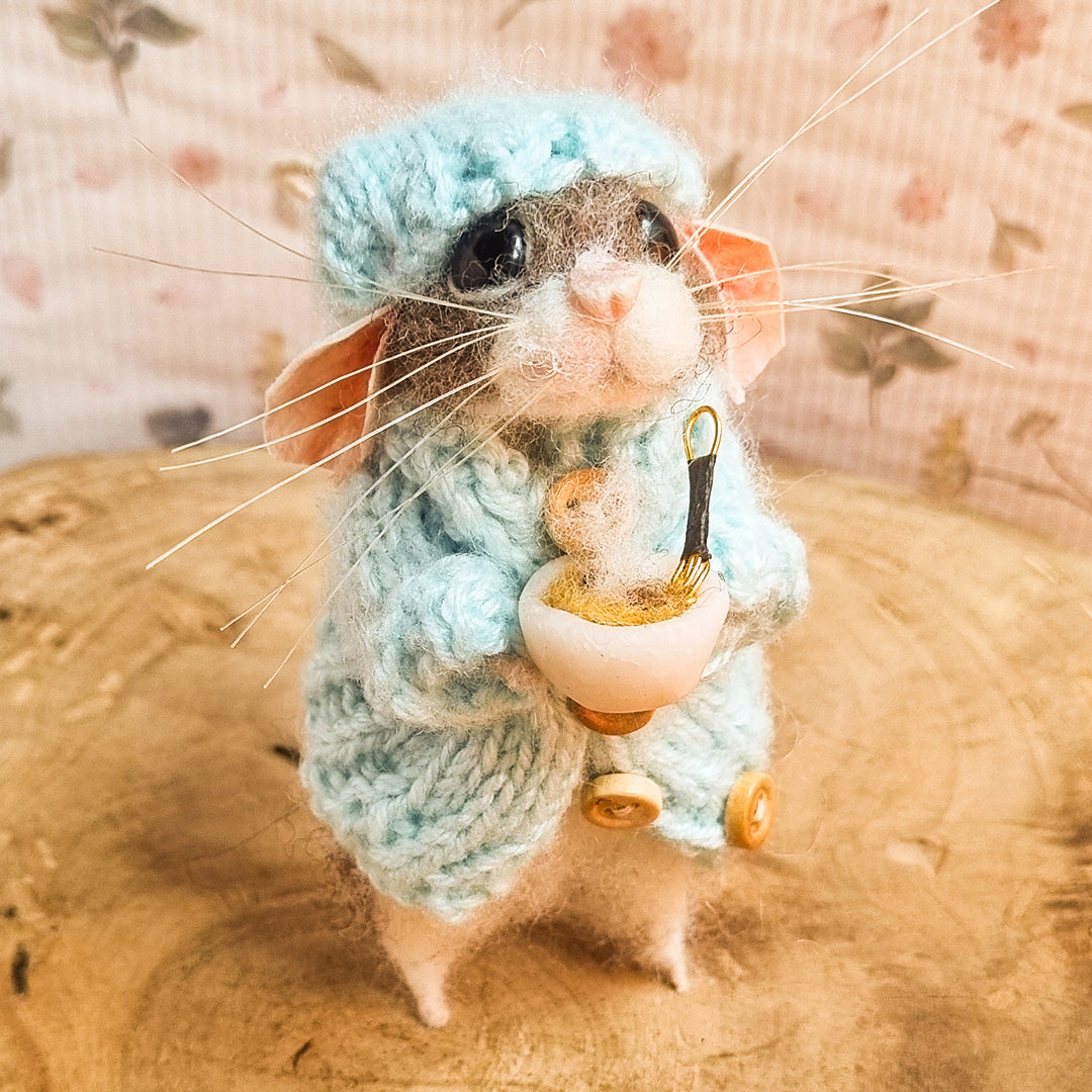 My biggest inspiration is the world of children’s books, where animals live in charming, cozy settings. Before becoming a full-time needle felter, I worked as a graphic designer, and this journey has allowed me to merge my love for design and storytelling, creating pieces that feel like they’ve stepped out of a storybook.