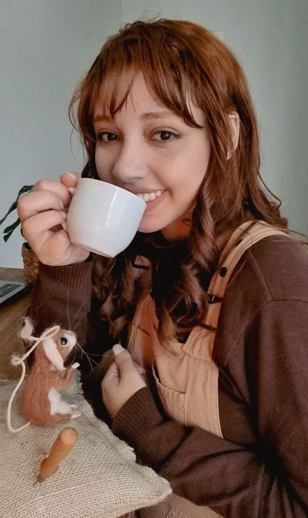 Hello! My name is Kel, and I’m a Brazilian artist who specializes in needle felted, lifelike mice, dressed in custom-made, little whimsical outfits sewn by me. I found comfort in needlefelting during childhood, and it became a way for me to navigate my struggles with anxiety and autism.