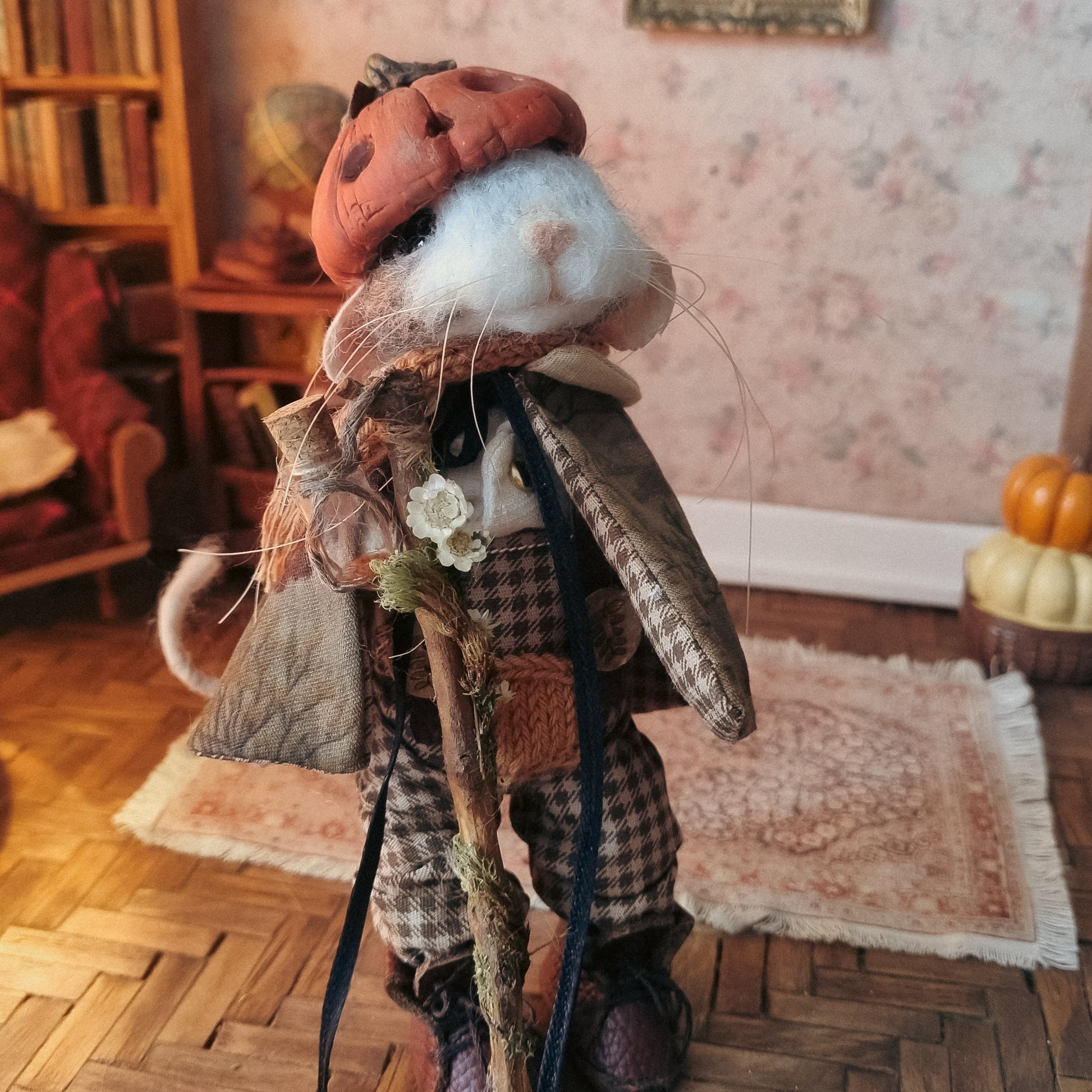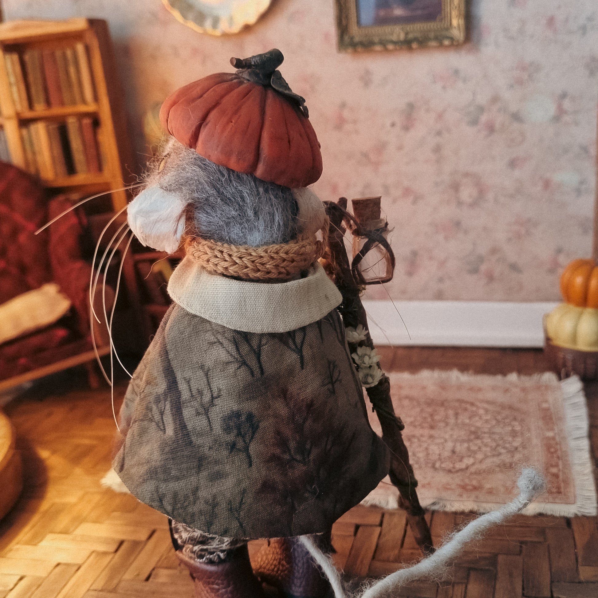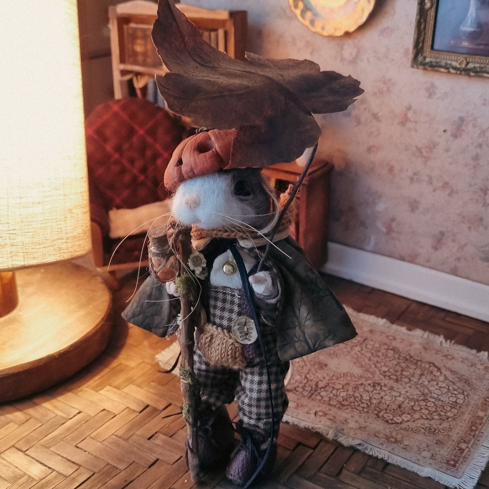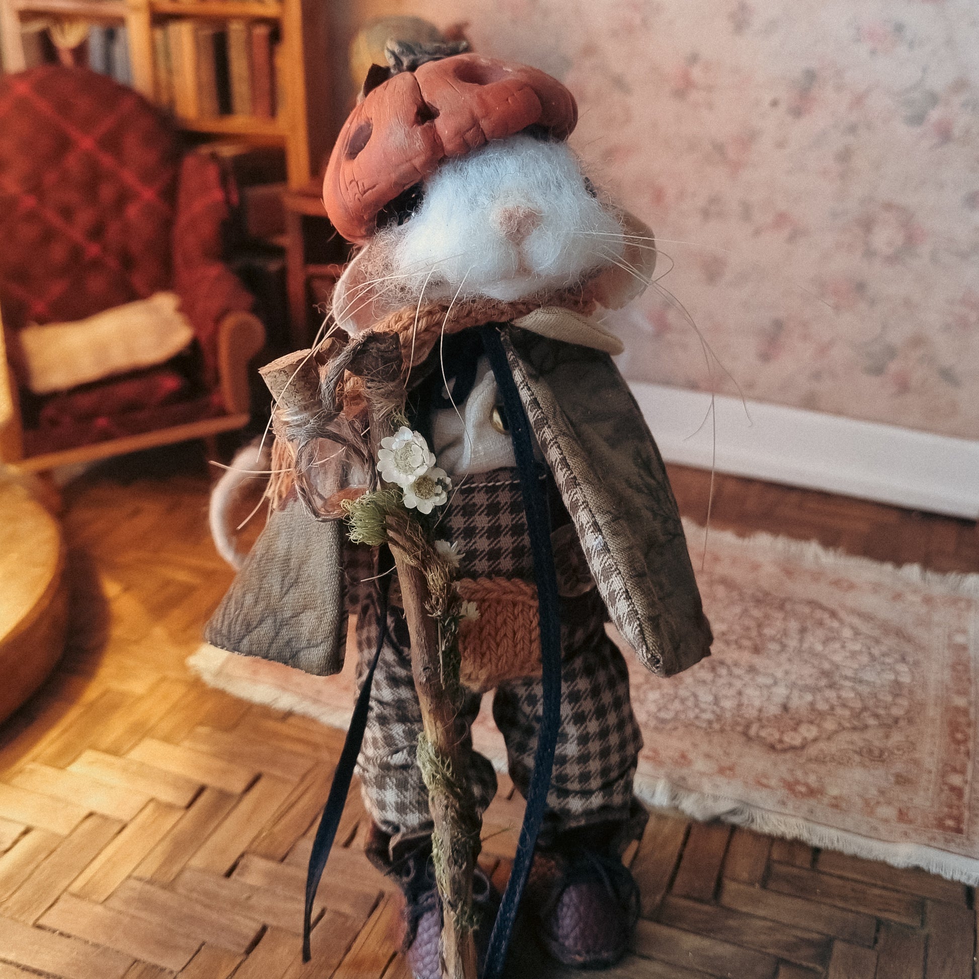 Peregrine is part of the Halloween 2025 collection 🐭 This Hallows' Eve adventurer wears a carved pumpkin hat, and an autumn coat full of the trees. He wears a checkered overalls over a white shirt, and carries both a mossy walking stick and a leaf umbrella 🎃🍂🍁🕯️