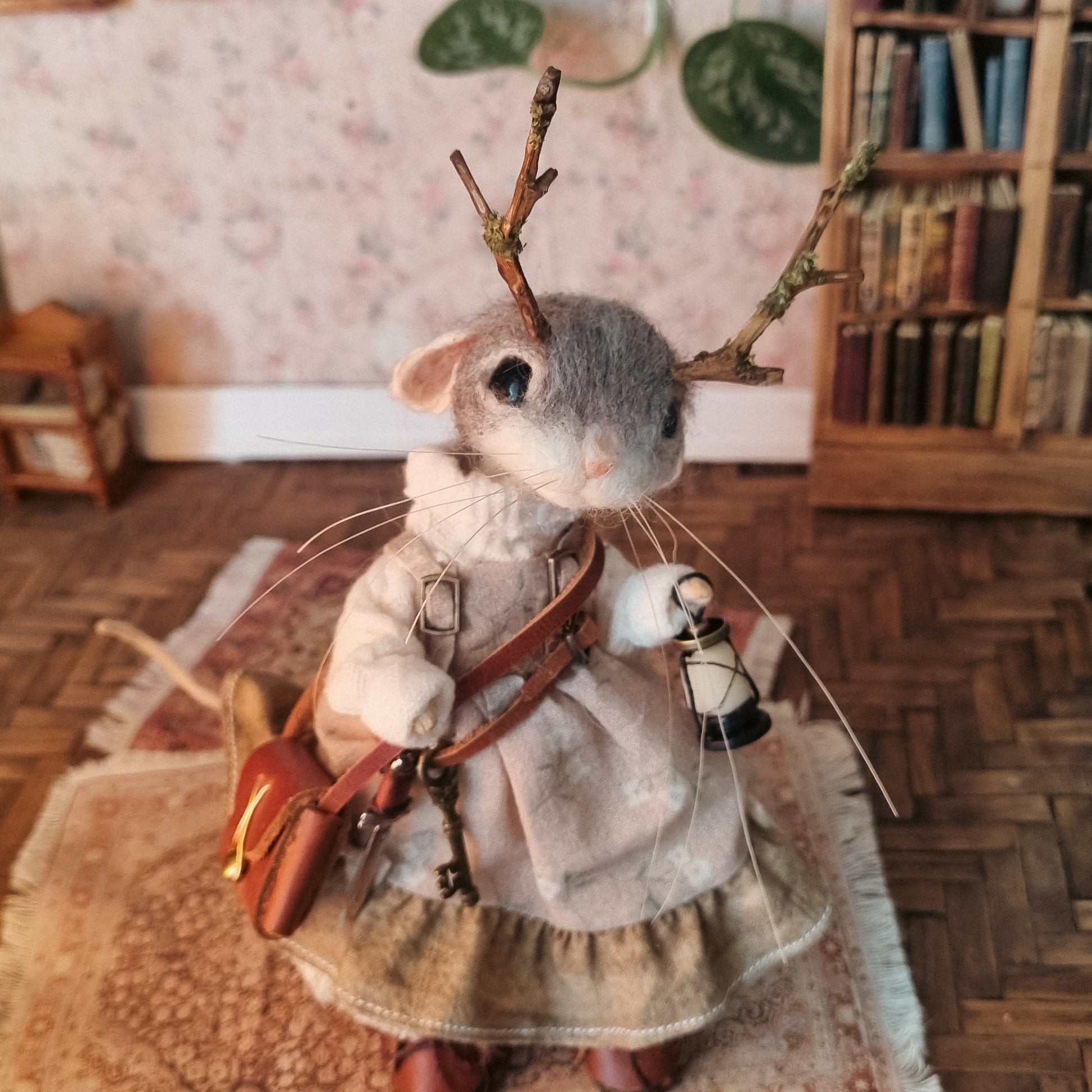 Seraphina wandered far from her burrow, and with her dagger, satchel and lantern, follows the curious silhouette of a great castle in the distance. Finding a key amongst the understory, she opens the gate to a beautiful winter garden, and runs towards the red berry bushes to taste a bit of sweetness in that cold weather.